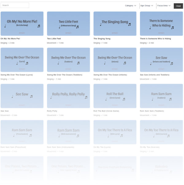 Never run out of ideas, whether you need a song in 5 minutes or are programming a whole term, Rhymey's Online Repertoire has an ever-growing catalogue of science-backed, OT-approved songs.